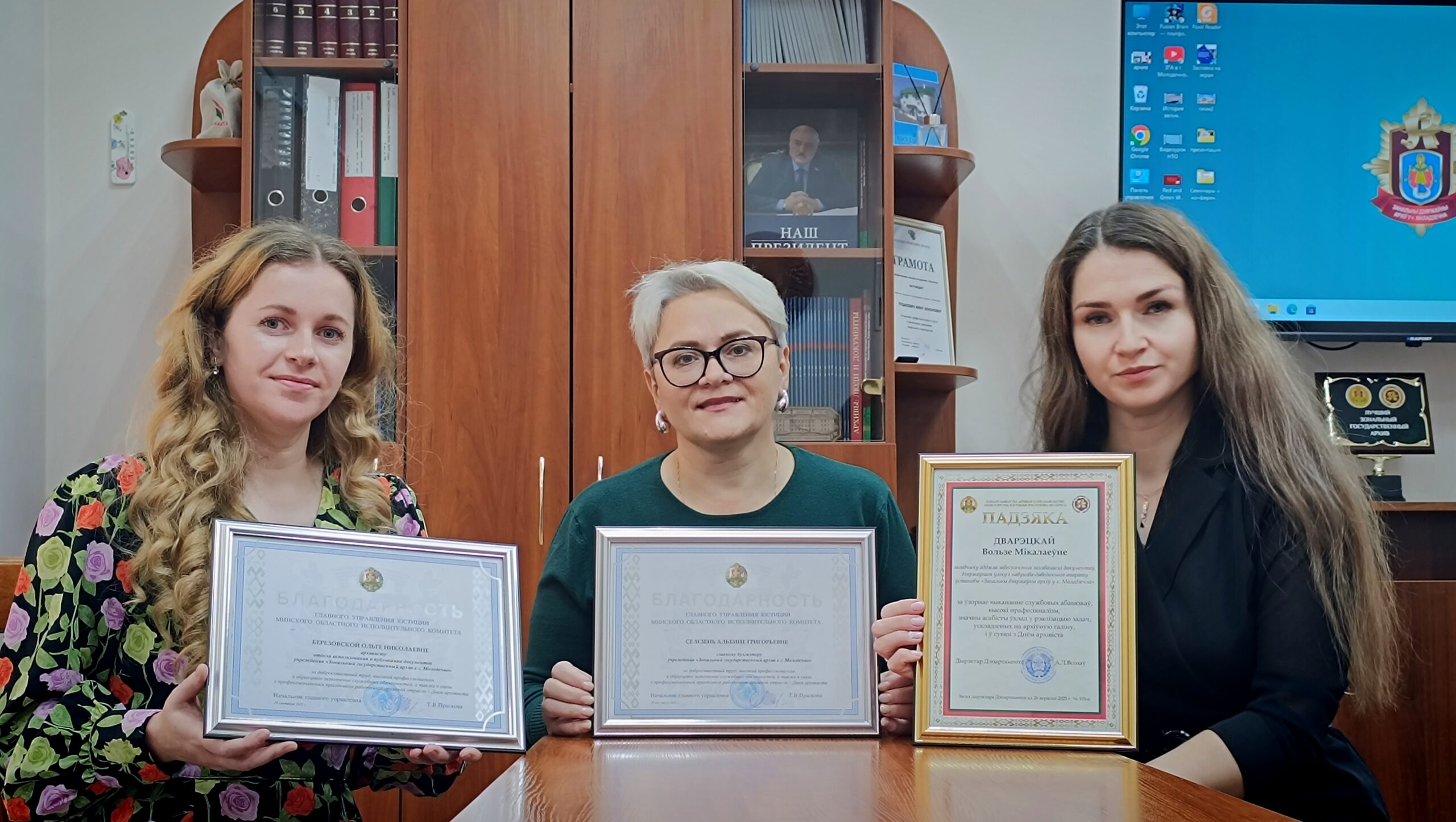Благодарность начальника Главного управления юстиции Минского облисполкома Тамары Владимировны Прасковой получили сразу два сотрудника архива: главный бухгалтер Альбина Григорьевна Селезень и архивист отдела использования и публикации документов Ольга Николаевна Березовская.