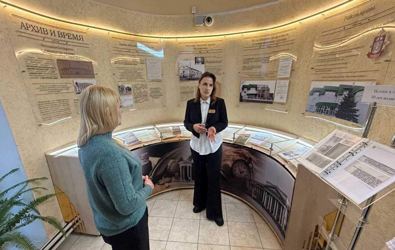 После отчетного мероприятия, сотрудники архива организовали для Ольги Александровны экскурсию по учреждению, представили новое музейно-выставочное пространство и подготовленные в 2026 году архивные экспозиции, посвящённые 80-летию Молодечненской центральной районной библиотеки имени М.Богдановича и 50-летию со дня ввода в эксплуатацию Вилейско-Минской водной системы.
