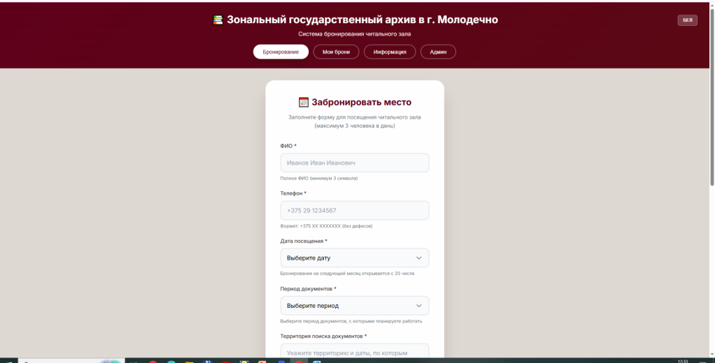 Внедрение онлайн-ресурса для бронирования читального зала в Зональном госархиве в г. Молодечно — это шаг к современным технологиям в архивном деле, открывающий новые горизонты для исследовательской деятельности и популяризации архивных фондов.